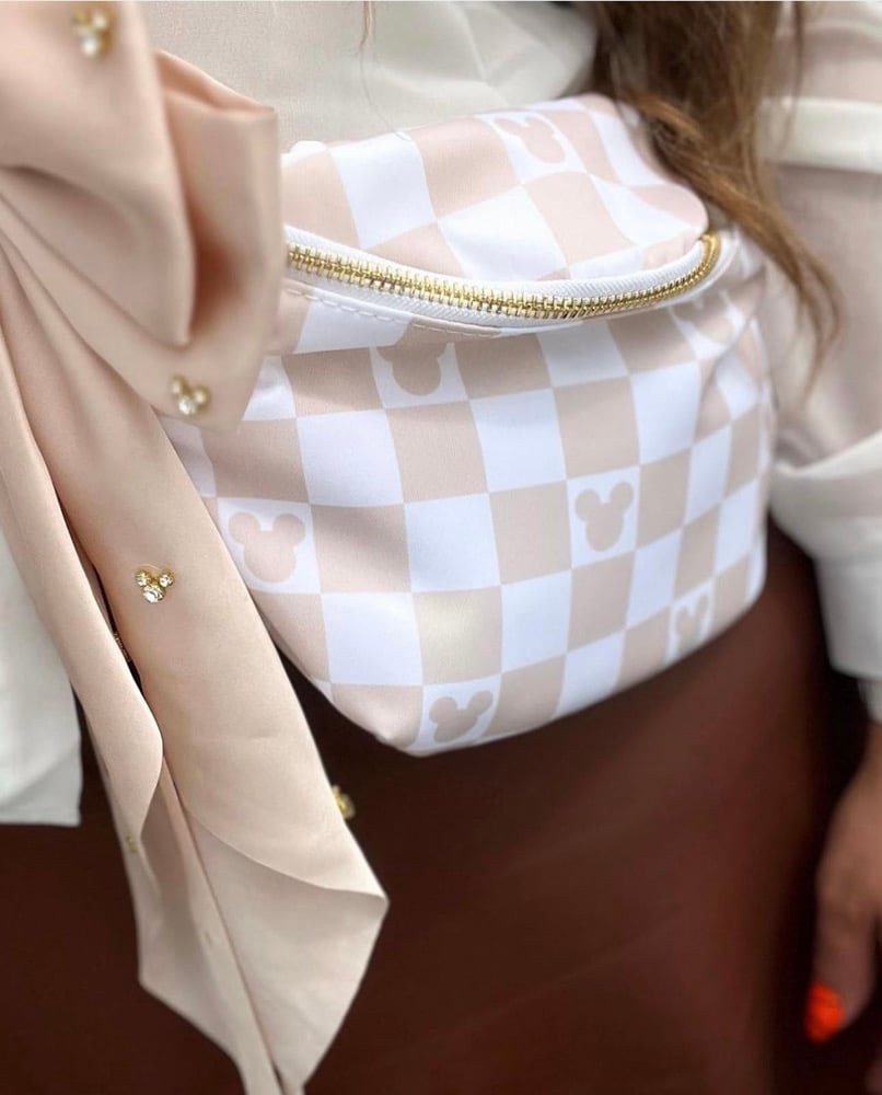 Cream Checkered Fanny Pack